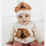 Complete the perfect outfit for your little one with our Lion Beanie Hat! Hand-knit in cozy yarn and accented with yarn tassels for a mane, this hat will have your child looking fierce and fashionable. Pair with our coordinating sweater for a look that will have everyone roaring with compliments! Each hat is partially knit from recycled, sustainable Polyester yarn made from plastic bottles. We are on a mission to help reduce the world's plastic pollution problem ♻