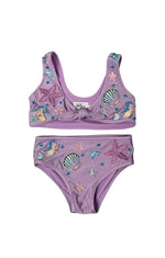 - Dive into underwater fun with this adorable mermaid-themed bikini, featuring vibrant appliqué designs of starfish, seashells, and playful mermaids.