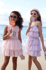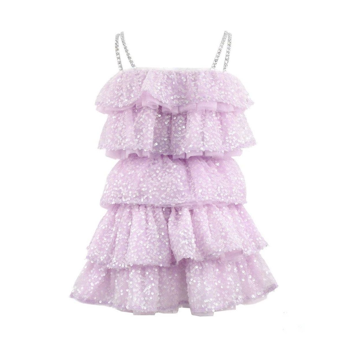- Sparkly layered set with shimmering sequins and a sweet bow for extra wow.