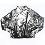 Get ready to shine brighter than the disco ball in this jaw-droppingly fabulous Silver Faux Leather Jacket! 🌈💃