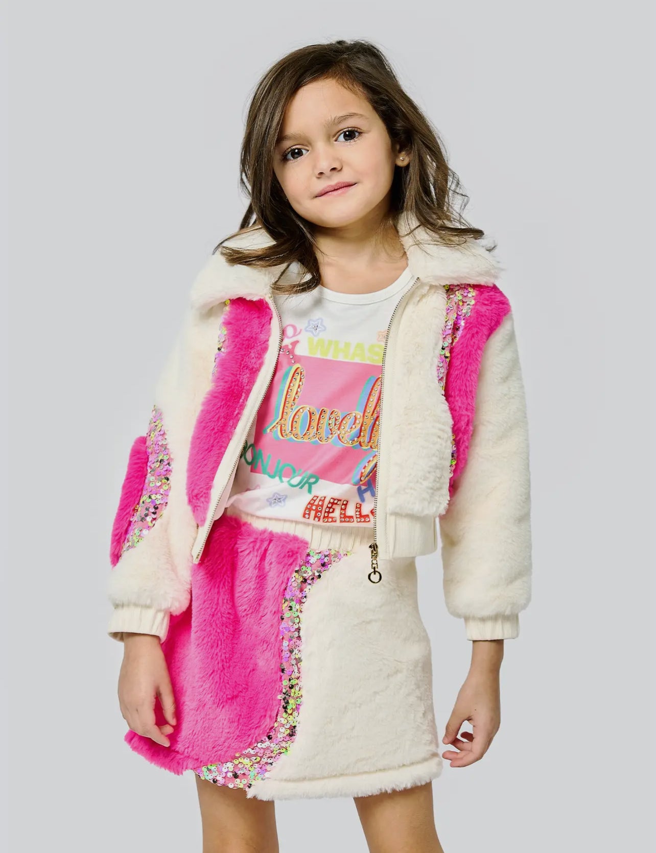 Definitely on trend!! Sequin and faux fur. Sold separate