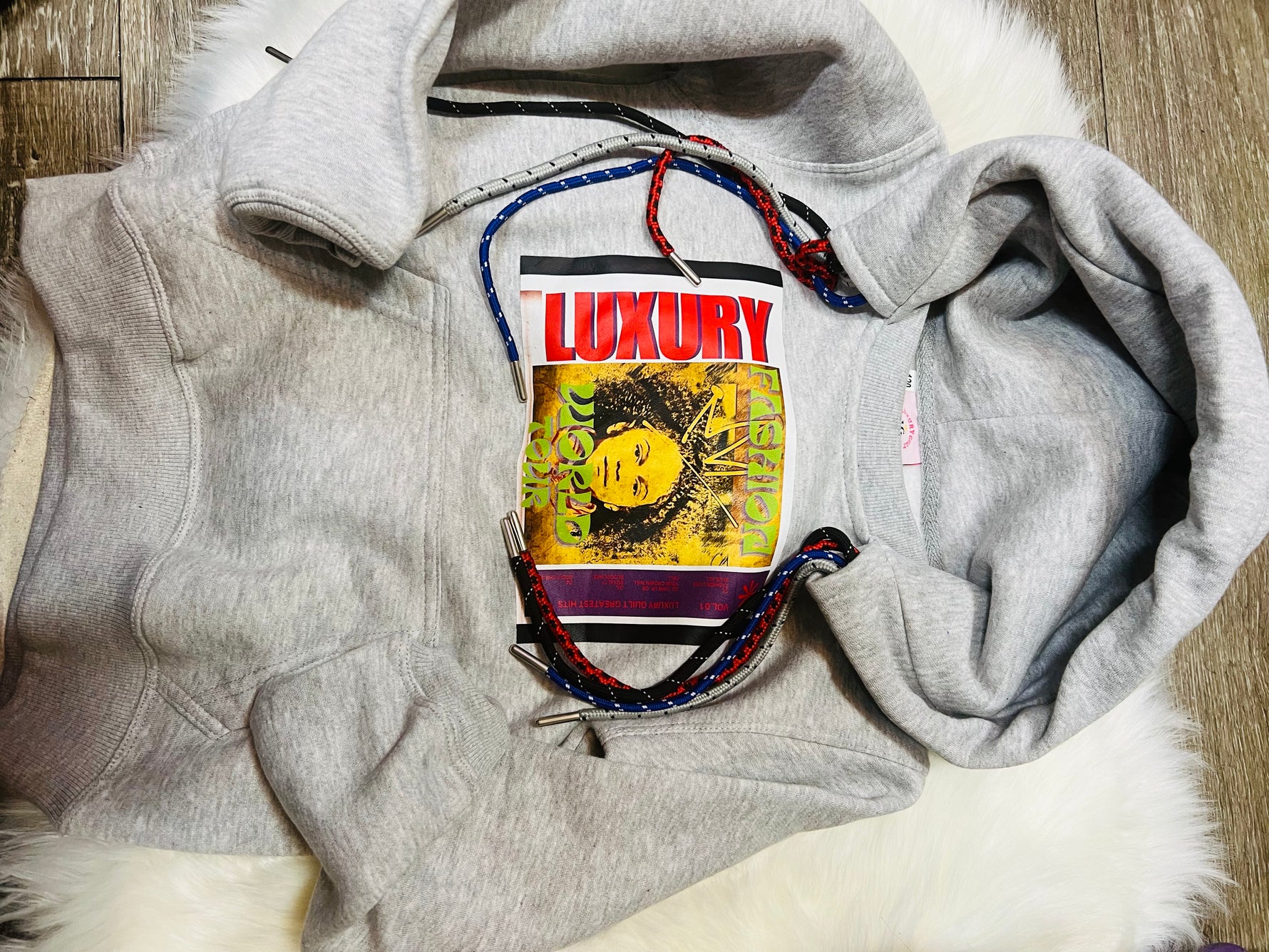 Introducing the latest in fashion with our Luxury Jeweled Sweatsuit! This sparkling collection will elevate your style with jeweled detailing on both the hood and pants. So go ahead, add some glitz and glam to little girl’s wardrobe.