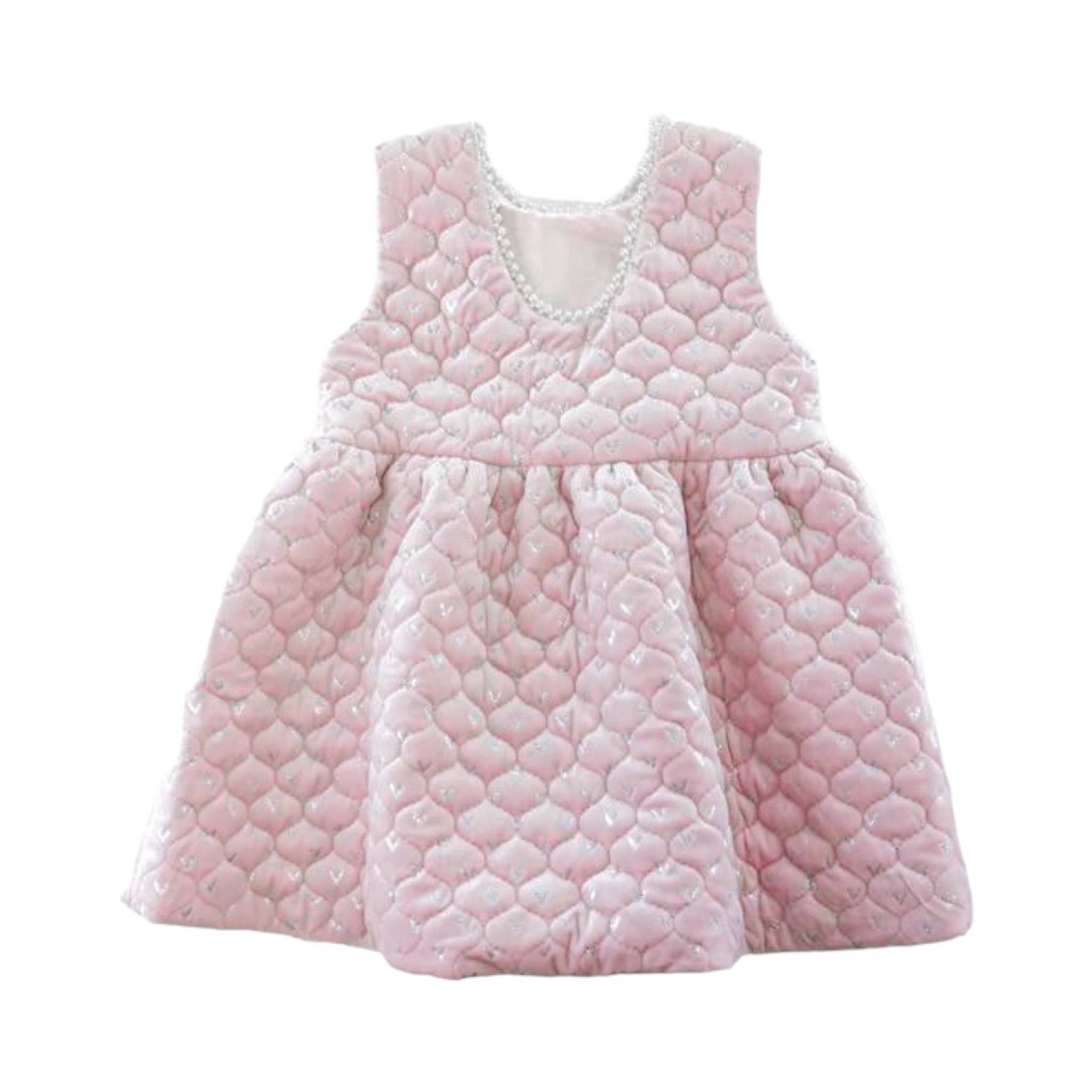 Pink Velvet Dress with Pearl Trim Details with a Lower Back Design. Beautiful jacket available to Complete the look.