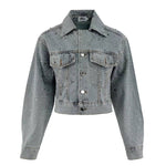 - Elevate your style with the Crystal Bow Denim Jacket, a chic and sparkling addition to any wardrobe.